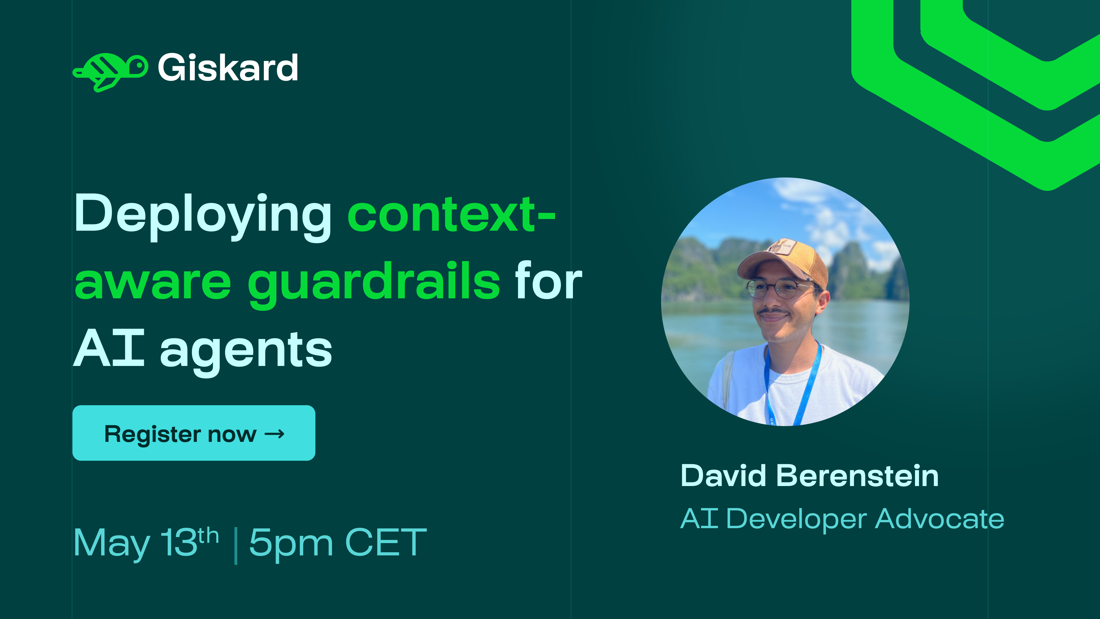 To present Giskard Guards and detail our approach to context-aware AI security, we invite you to our upcoming live session on May 13, 2026, at 5 PM CEST.